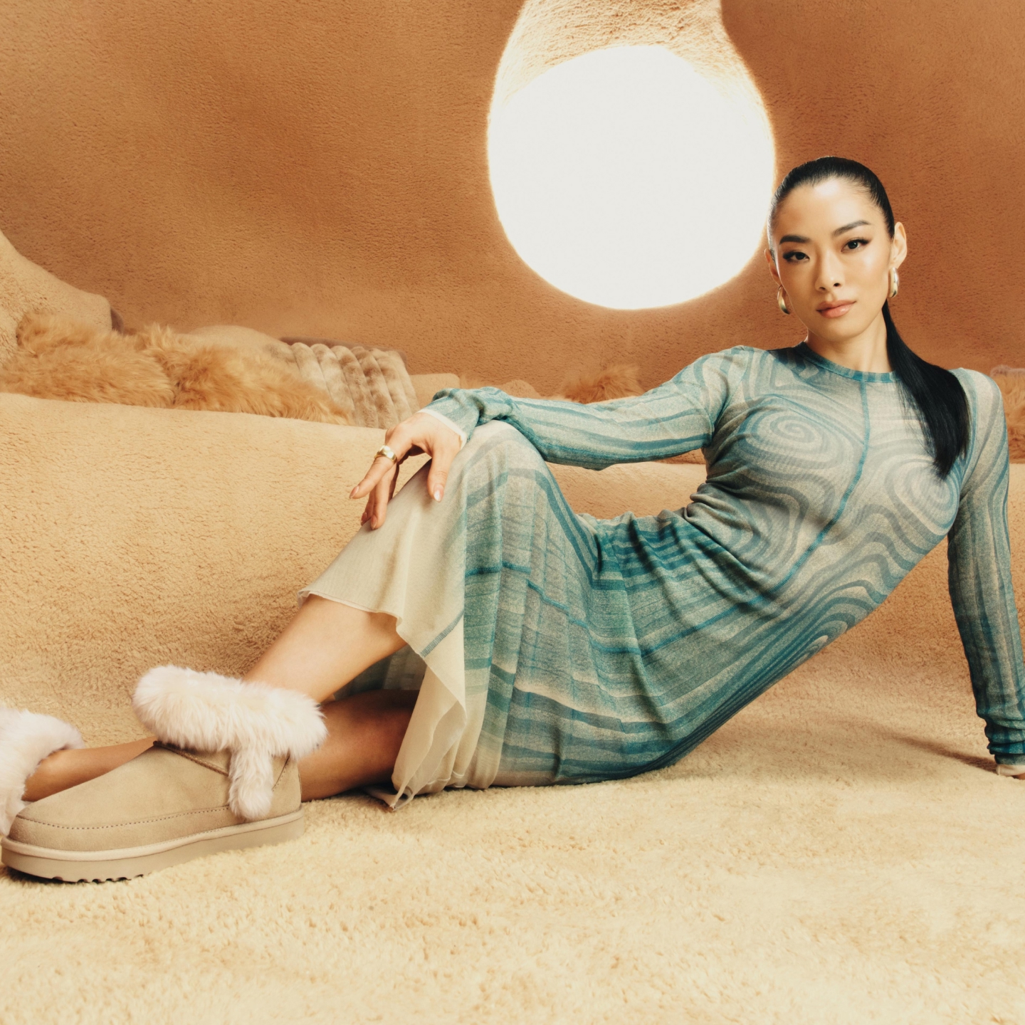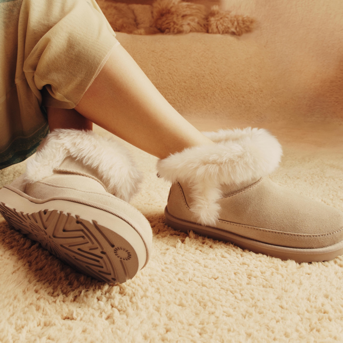 UGG:in lyhytvartiset mokkanahkakengät muhkealla karvareunuksella.