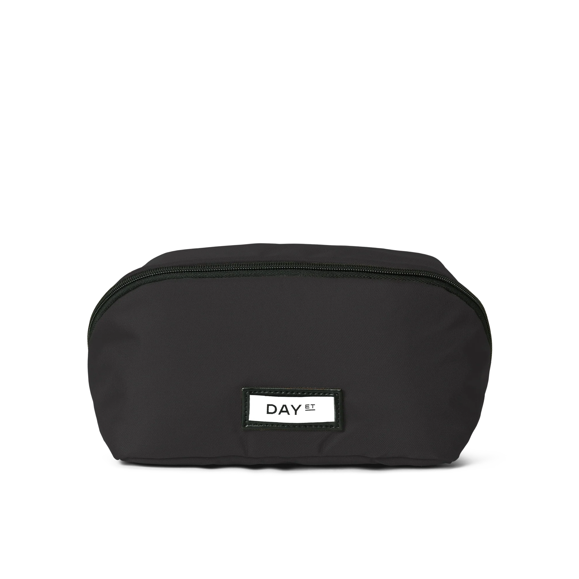 Meikkipussin sisällä kaksi osiota, jotka avautuvat leveästi esille.