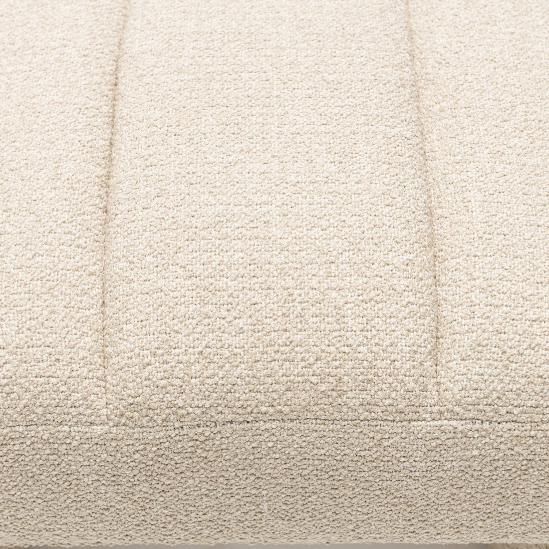 Bouclé- kankainen penkki, jossa kaareva muotoilu.