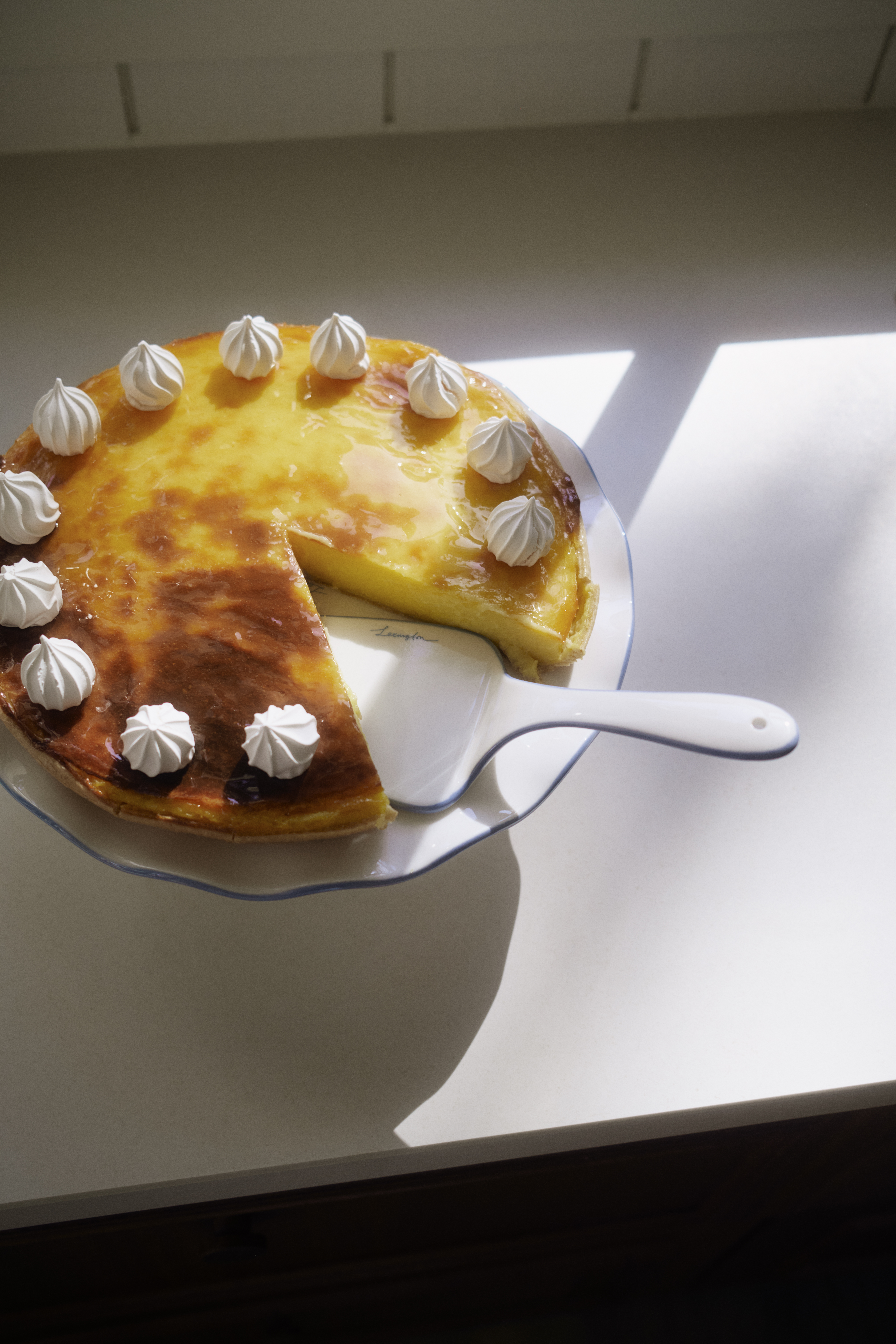Kakkulapio, jossa käsinmaalatut reunat sinisenä