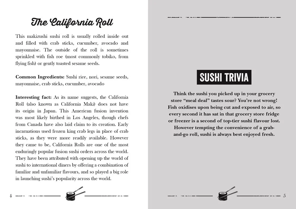 Featuring history, trivia, recipes, sushi profiles, preparation and etiquette tips and more, this pocket guide is the perfect introduction to the wonderful world of sushi.From seaweed-wrapped maki rolls to tuna-topped nigiri, dive into this celebration of one of the world’s favorite delicaciesThere are few foods more recognizable than sushi. Originating in Japan, the iconic fluffy white rice that’s topped, wrapped or rolled with beautifully prepared fish and vegetables is an art form as much as it is a meal.This handy pocket guide will give you a taste of the following and much more: Find food for thought with the history of sushi Learn about different kinds of sushi, from the traditional to the modern, and how to eat it Whet your appetite with delicate bites of trivia Discover mouth-watering recipes, allowing you to bring Japan to your very own kitchenWhether you are a curious beginner or a seasoned connoisseur, The Little Book of Sushi will be your handy guide to the bite-sized delicacy which has found favor all over the world.