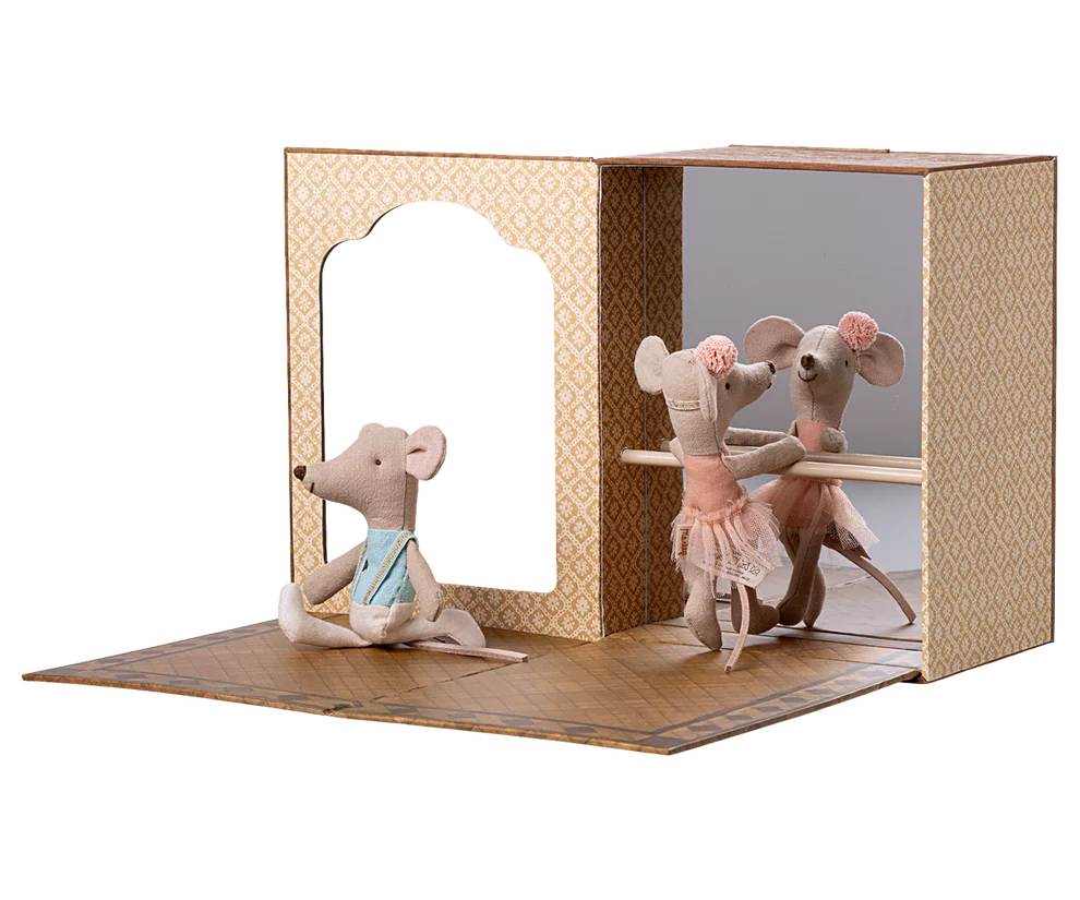 Setti muuntautuu sekä hiirten makuuhuoneeksi että balettistudioksi.