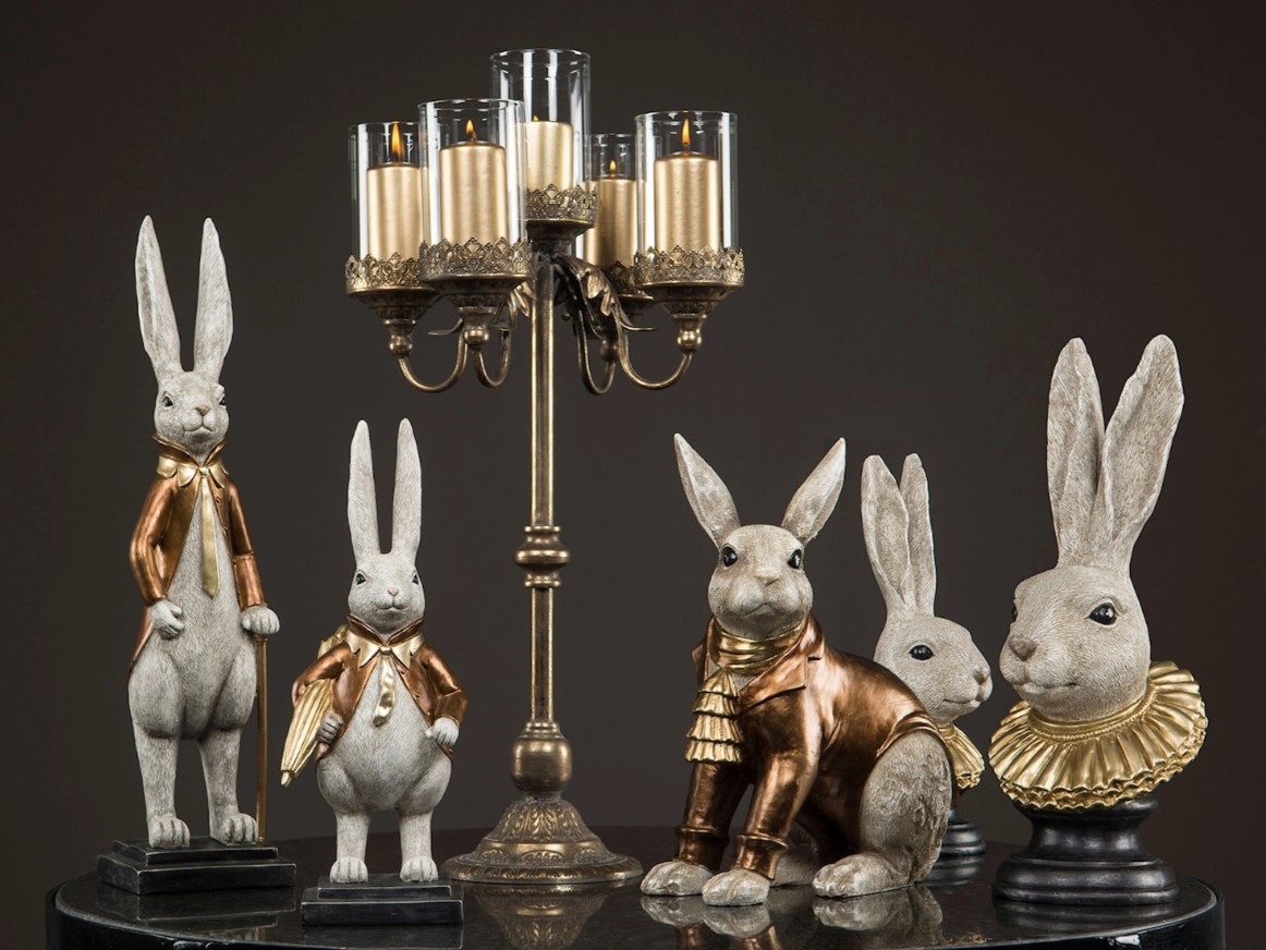 Tuo leikkisä lisä kotisi sisustukseen hyvin pukeutuneella, sateenvarjoa kantavalla jäniksellä.