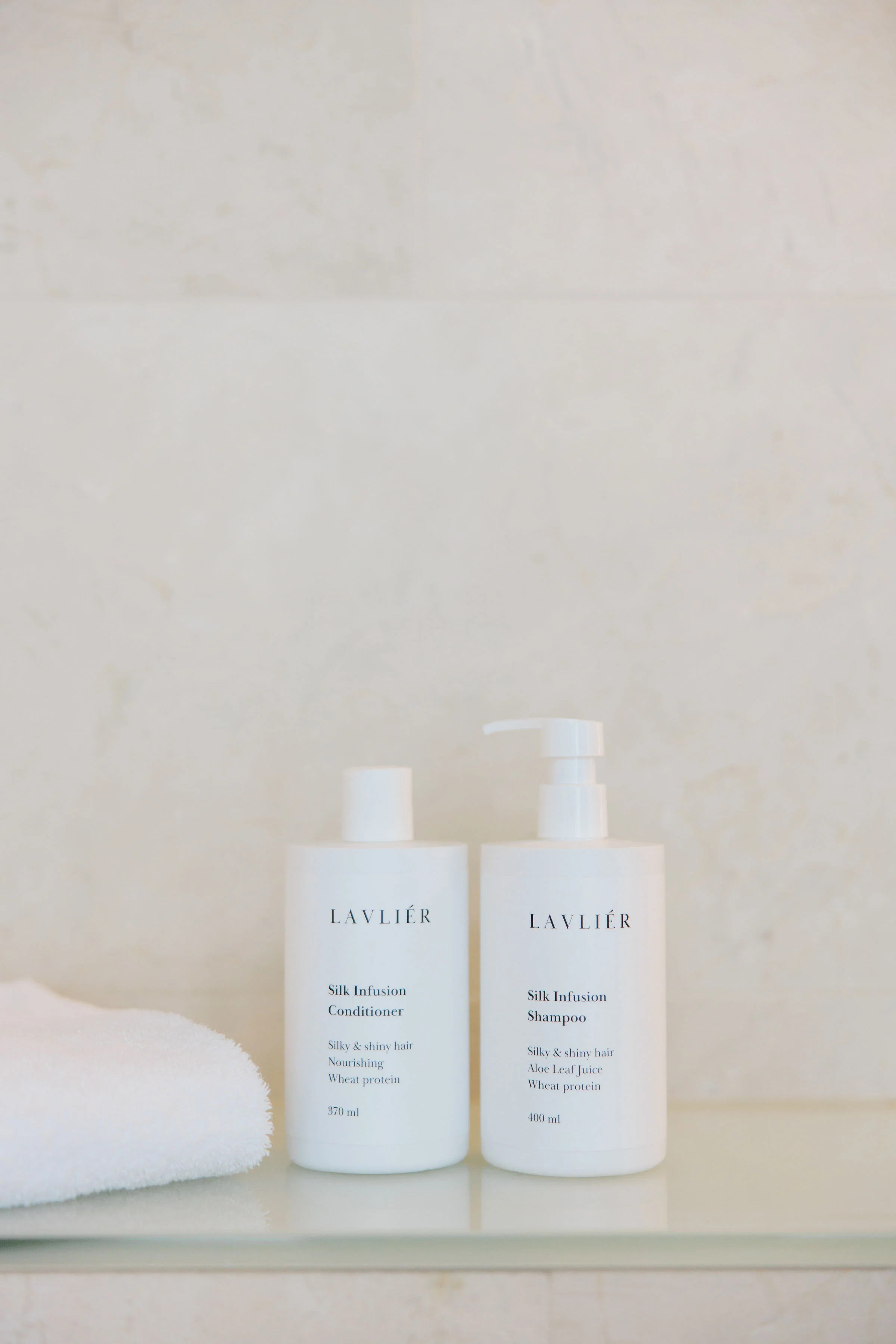 Parhaan lopputuloksen saavuttamiseksi käytä yhdessä Lavliér Silk Infusion Conditioner -hoitoaineen kanssa.