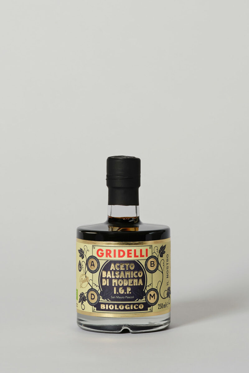 Luomubalsamico, joka on valmistettu Emilia-Romagnassa auringon kypsyttämistä punaisista viinirypäleistä.