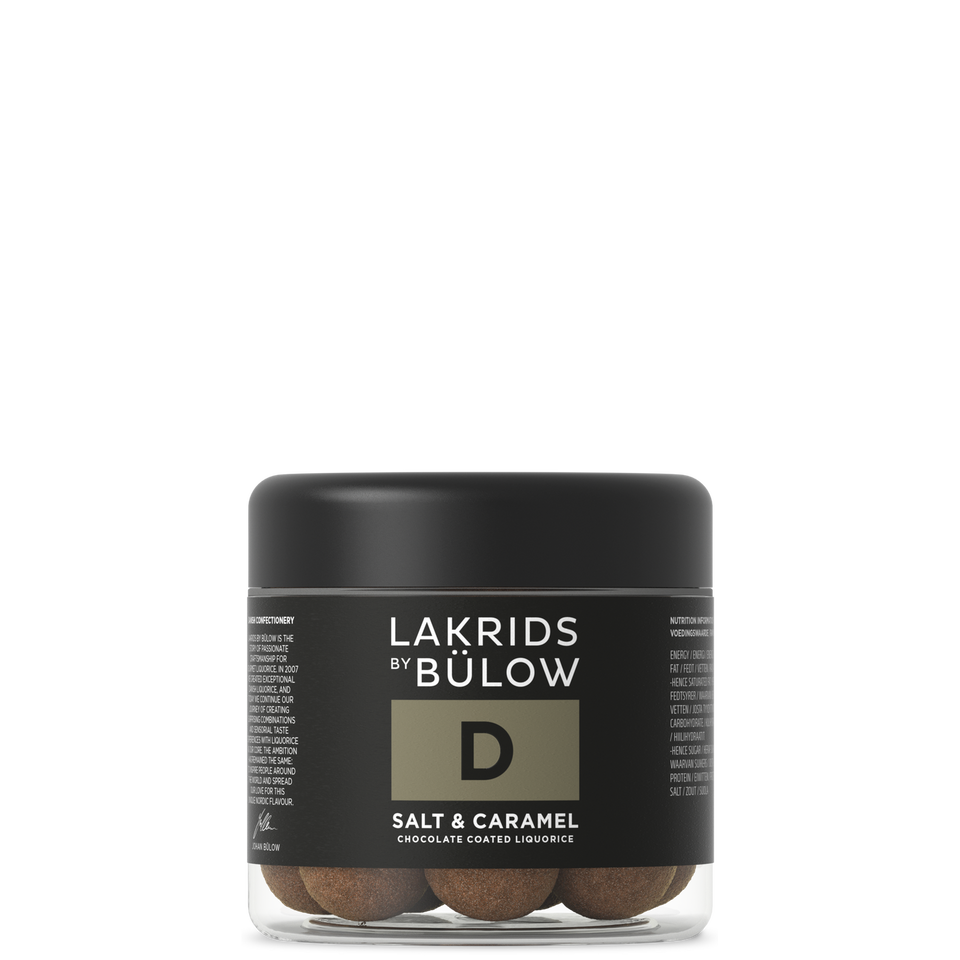 D on makea lakritsi kuorrutettuna karamellisoituun dulce-suklaaseen ja rapeisiin merisuolahiutaleisiin. Sisukas, mutta samalla lempeä makukokonaisuus. Vain yhden makeisen nauttiminen on yksinkertaisesti mahdotonta.