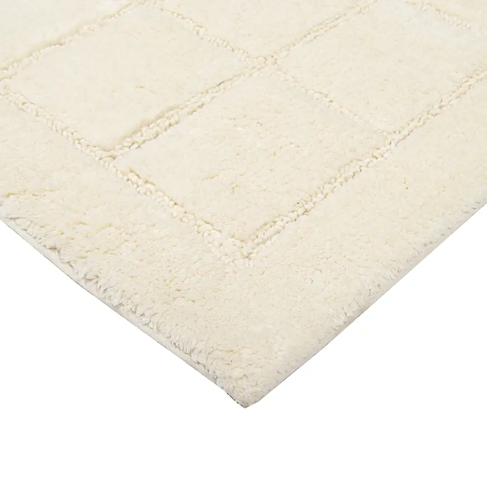 Lenkkinukkainen ruutukuvio erottuu kauniisti maton muusta nukkapinnasta.