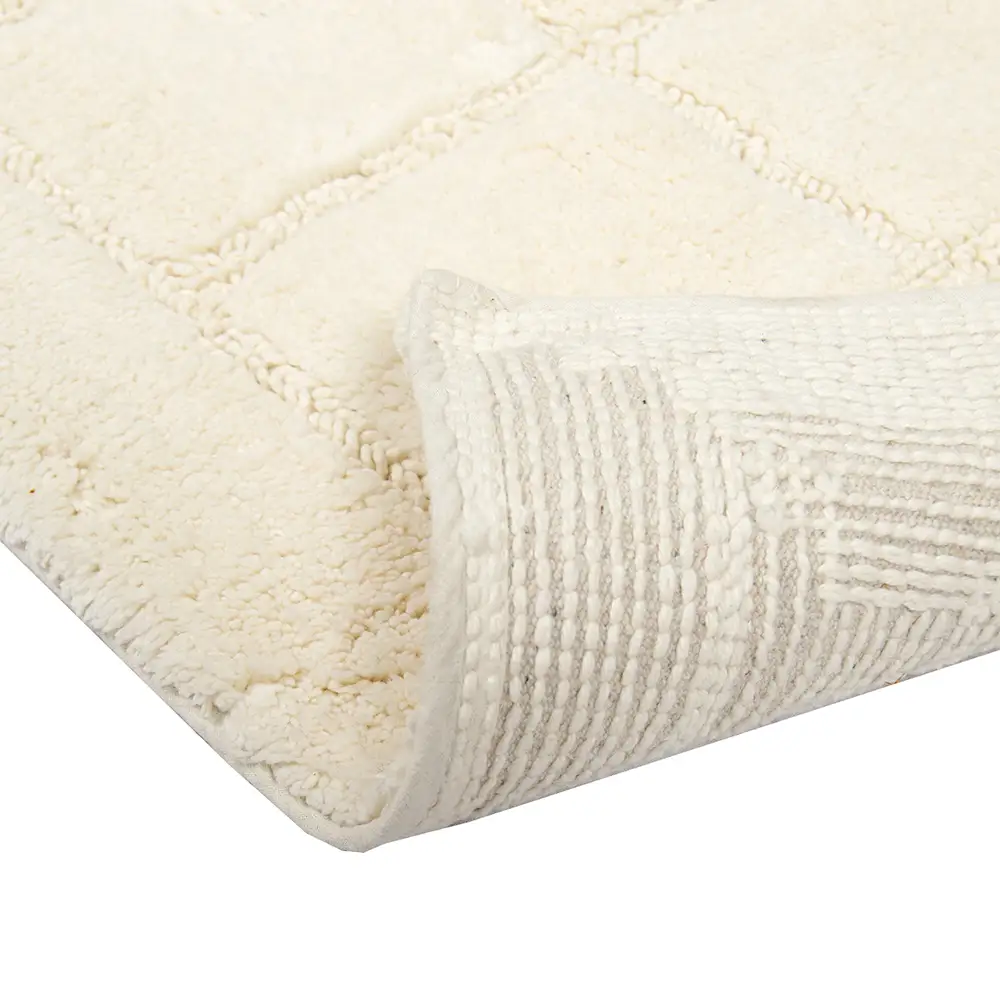Kaunis kylpyhuonematto on valmistettu pehmeästä puuvillasta.