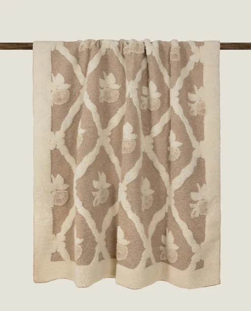 Muhkea kuvioitu torkkupeitto.