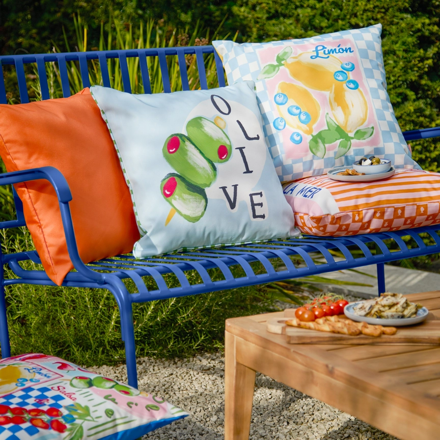 Mediterranean limon ourdoor cushion 43x43, sky bluw