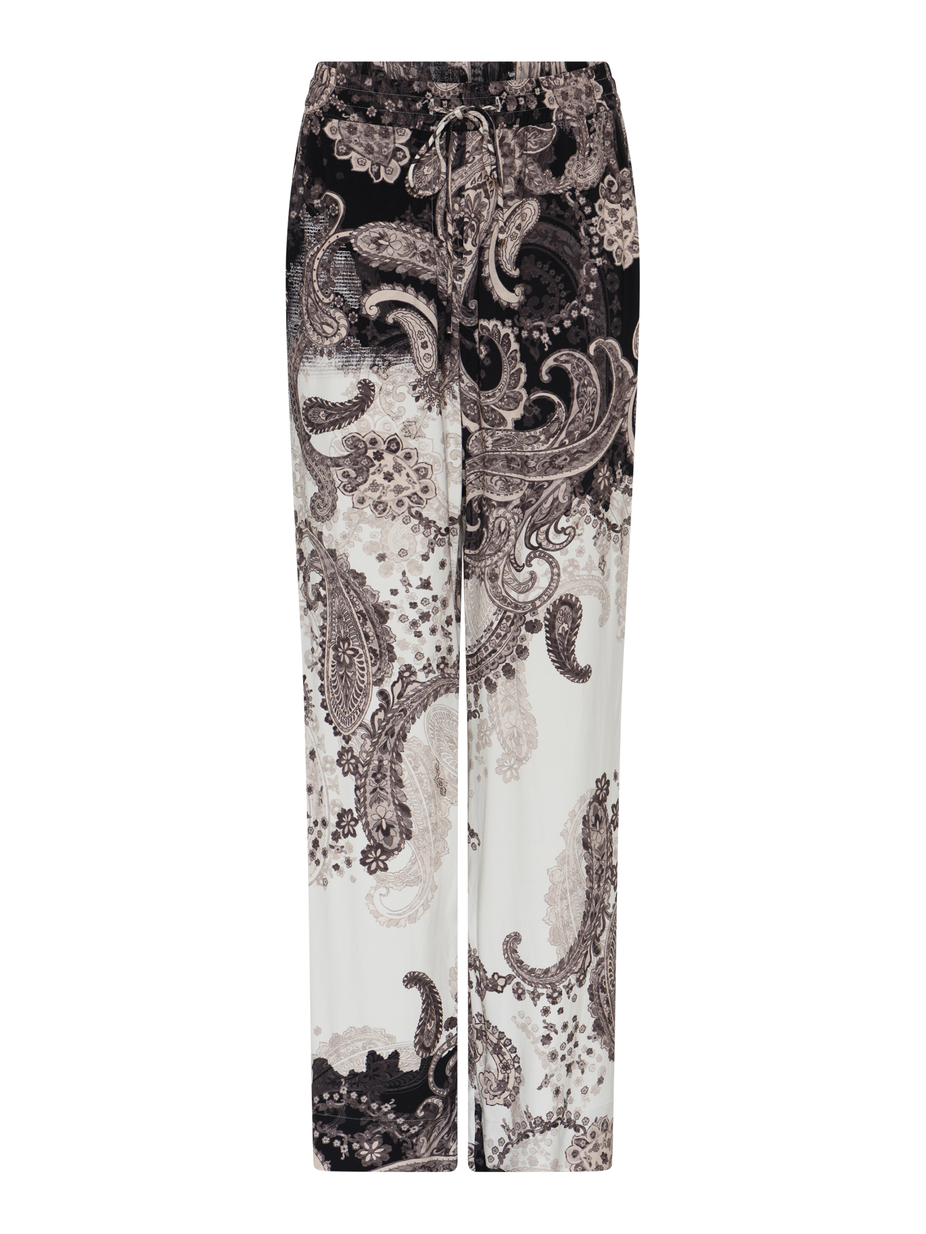 Leveälahkeiset printtihousut.