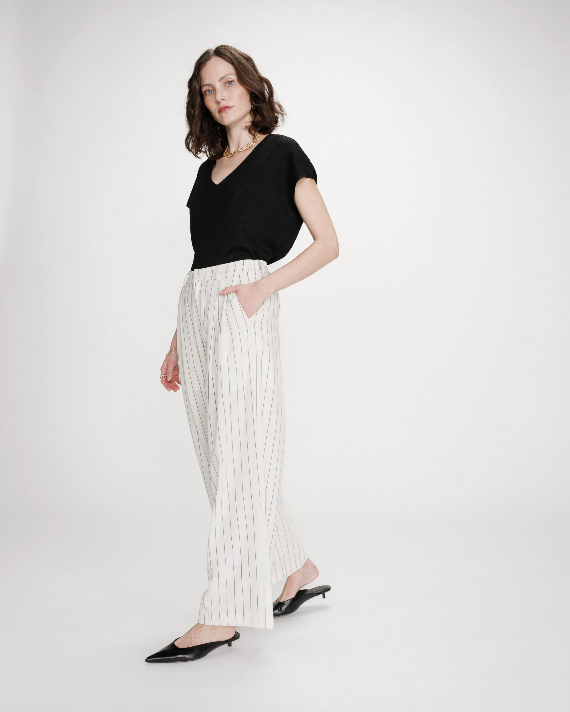 Pystyraidalliset housut.