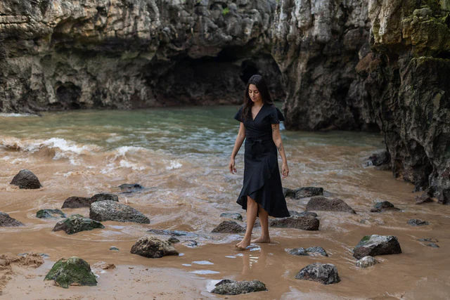 Valekietaisumalli ja eri tavoin solmittava vyötärönauha varmistavat istuvuuden jokaiselle vartalolle ja imartelevat muotoleikkaukset luovat kauniin siluetin korostaen juuri oikeita kohtia.