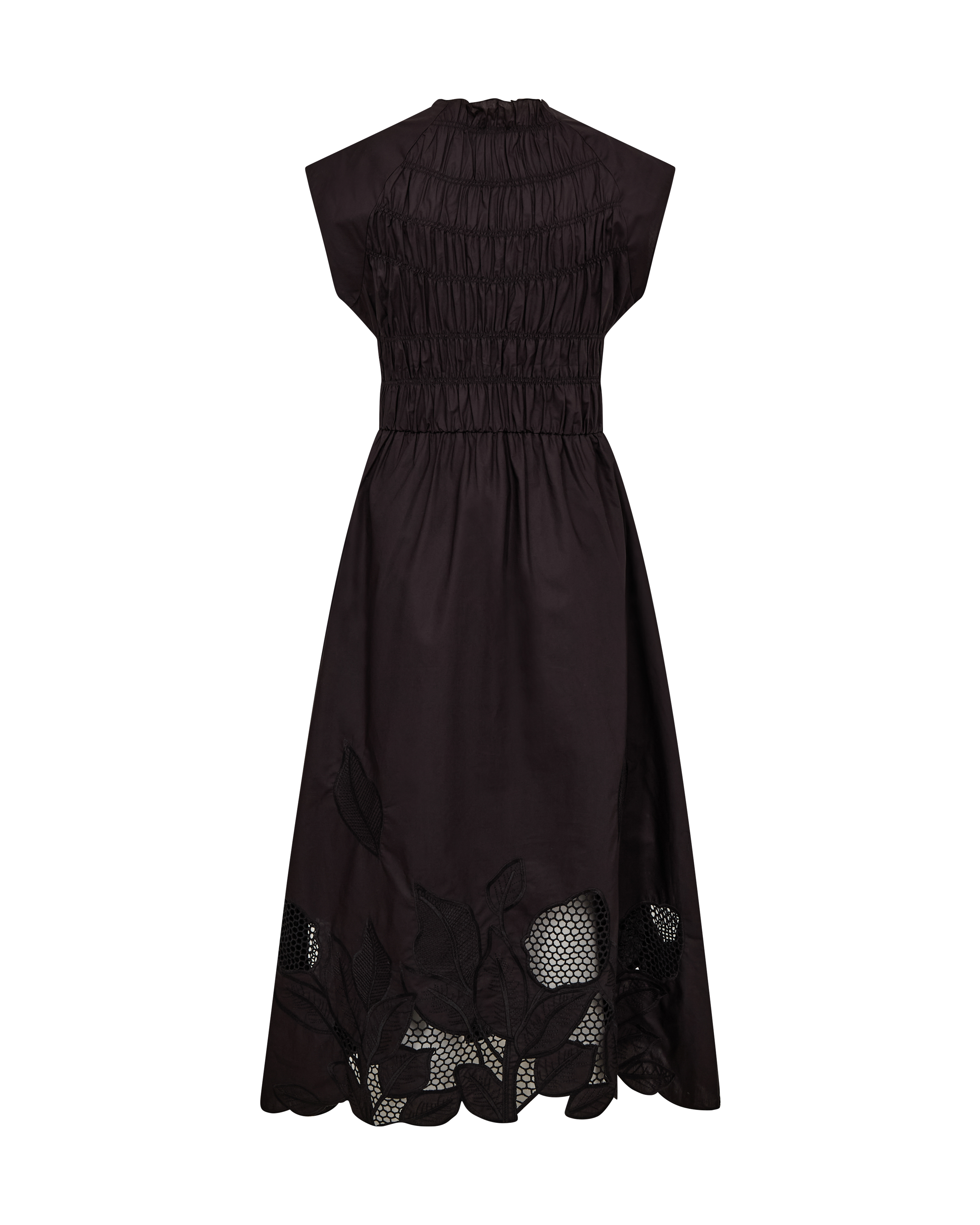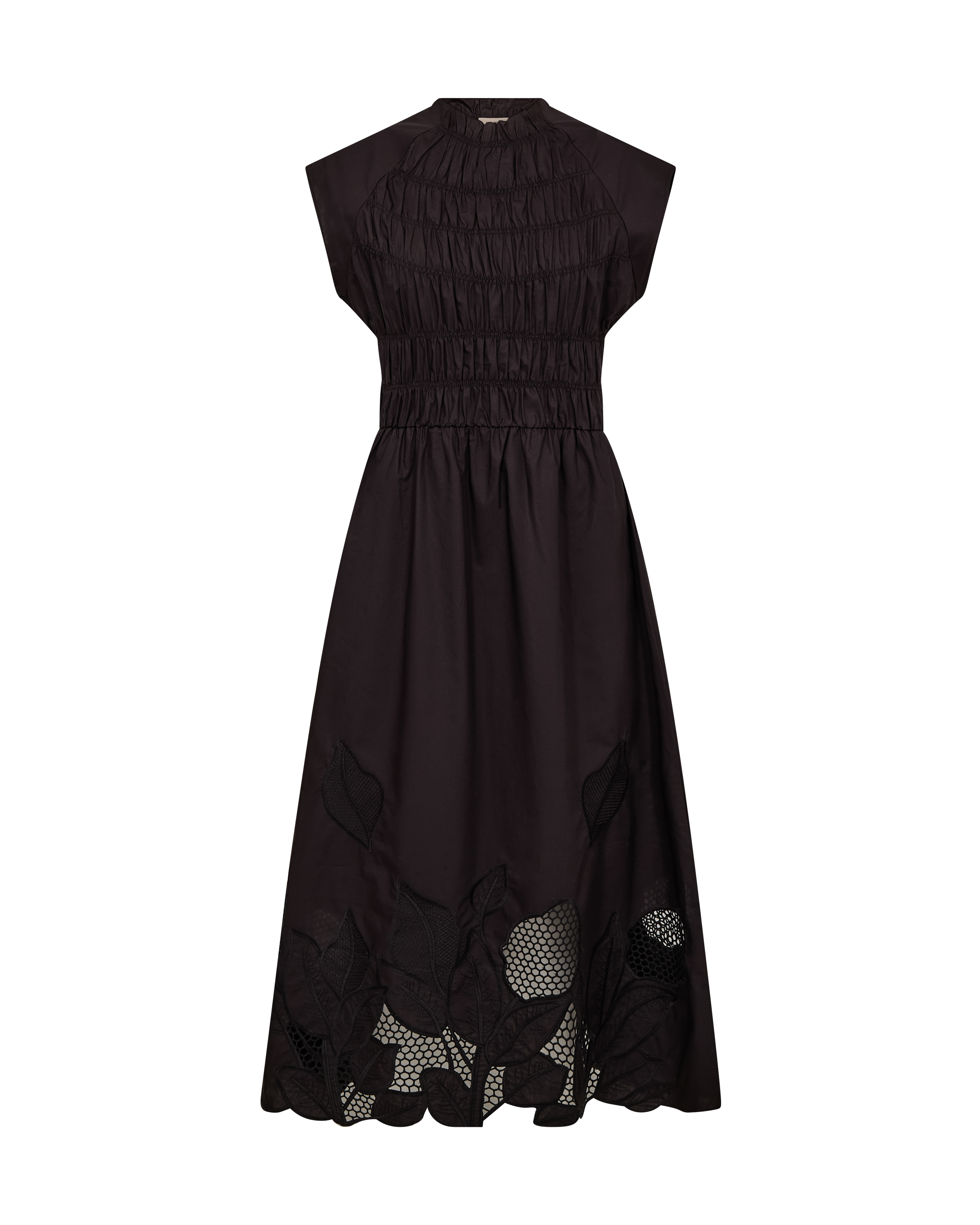 Hame A-linjainen ja helmassa kaunista kirjailua.