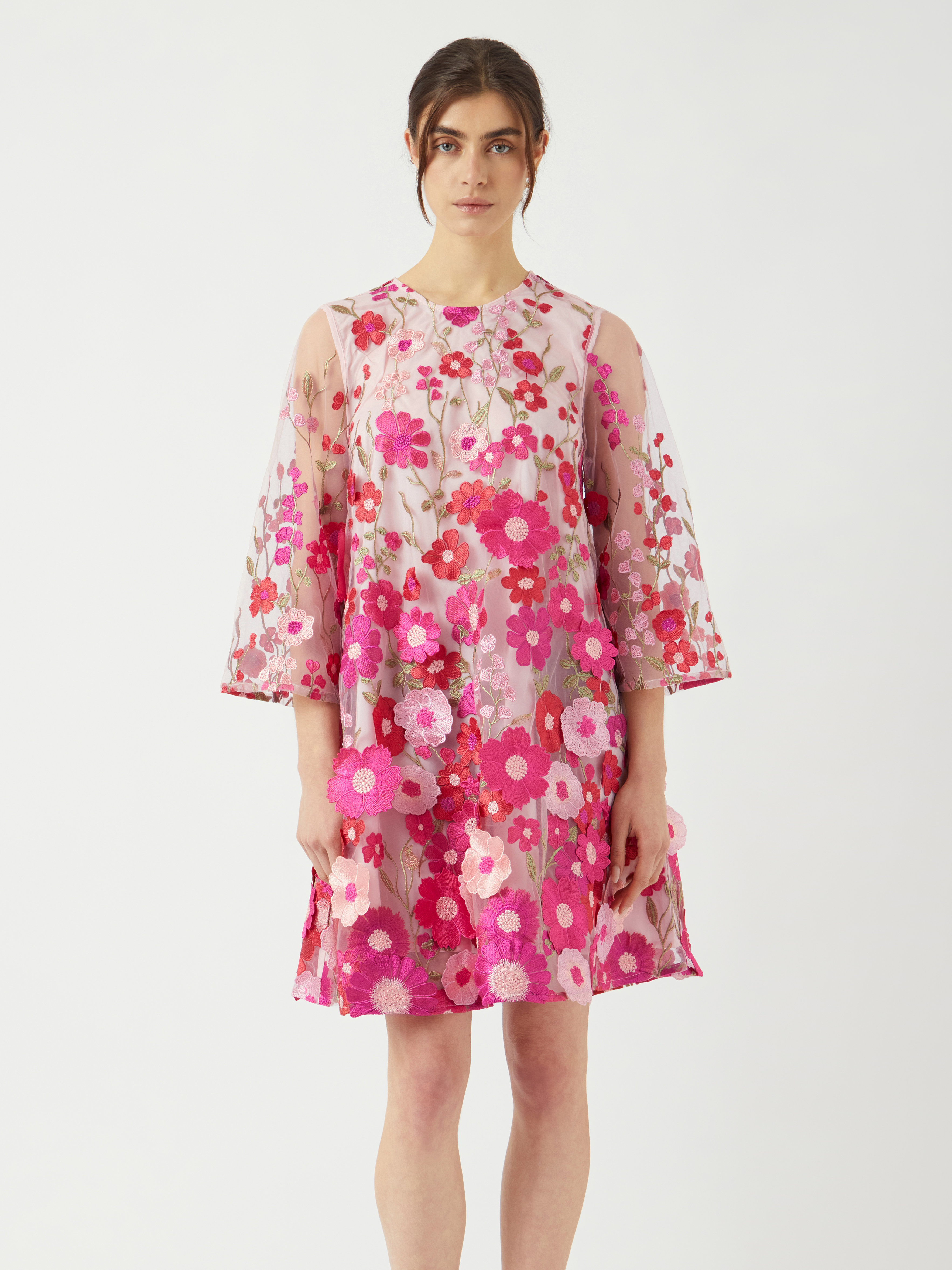 Supernäyttävä kukkamekko a-linjaisella helmalla.