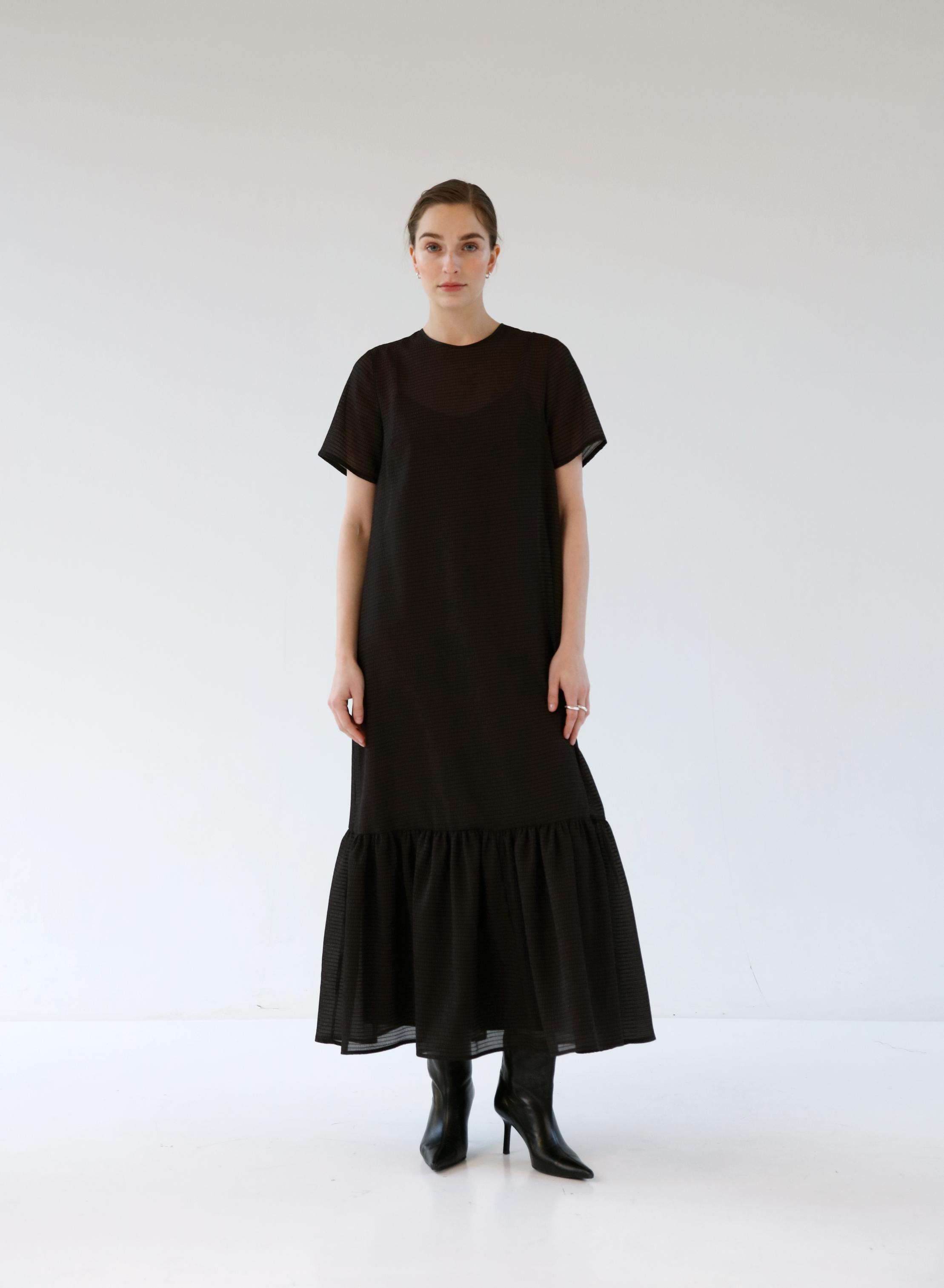 Mekon mukana irrallinen musta alusmekko spagettiolkaimilla.