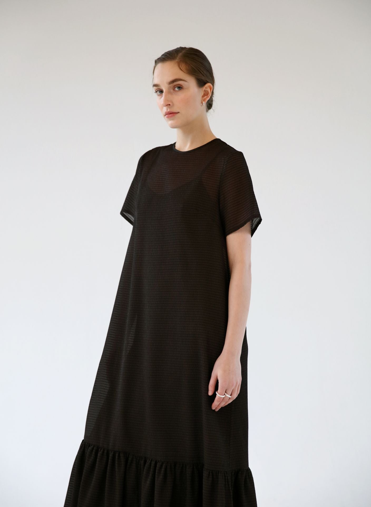 Näyttävä lyhythihainen mekko frillahelmalla.