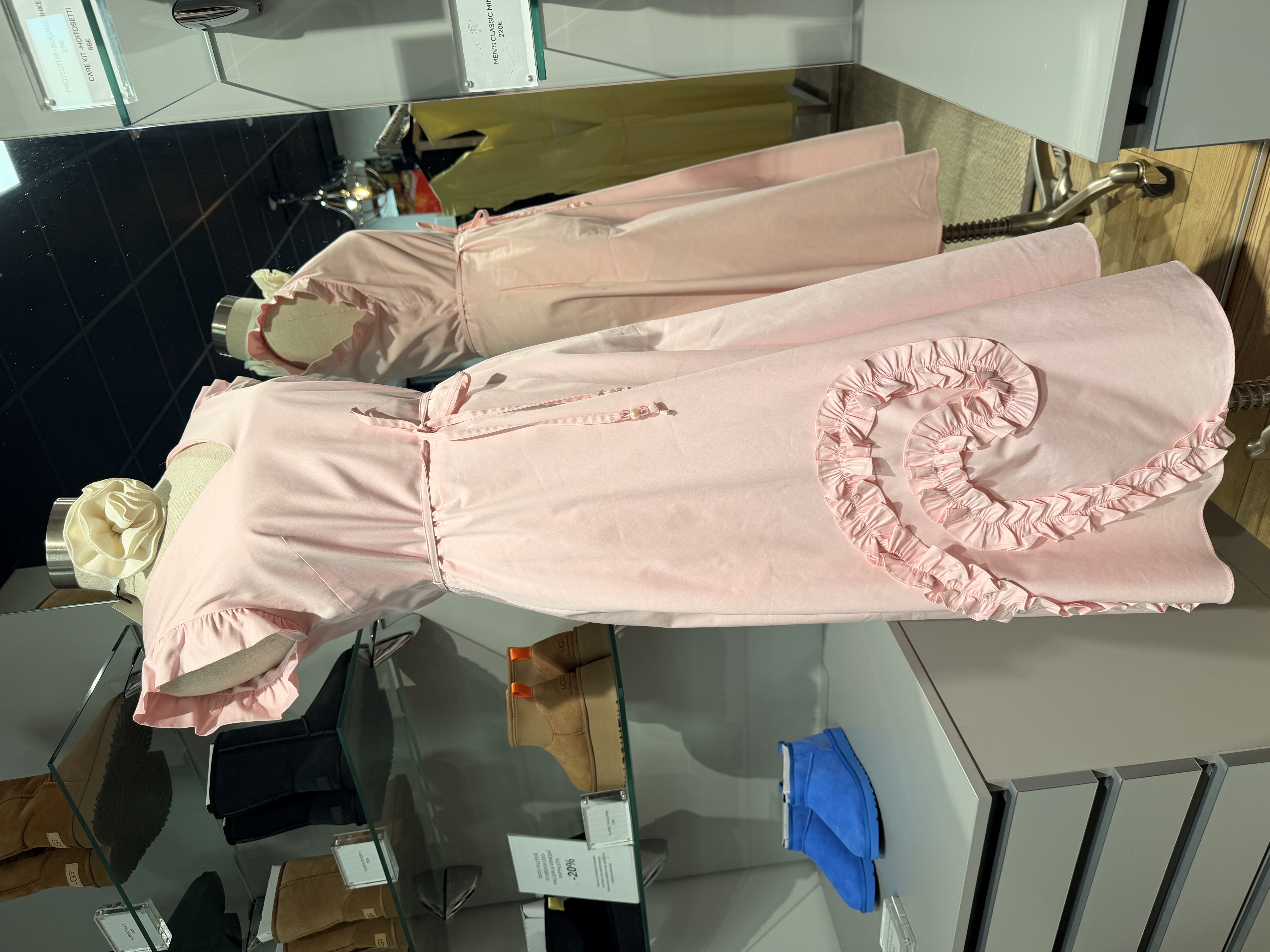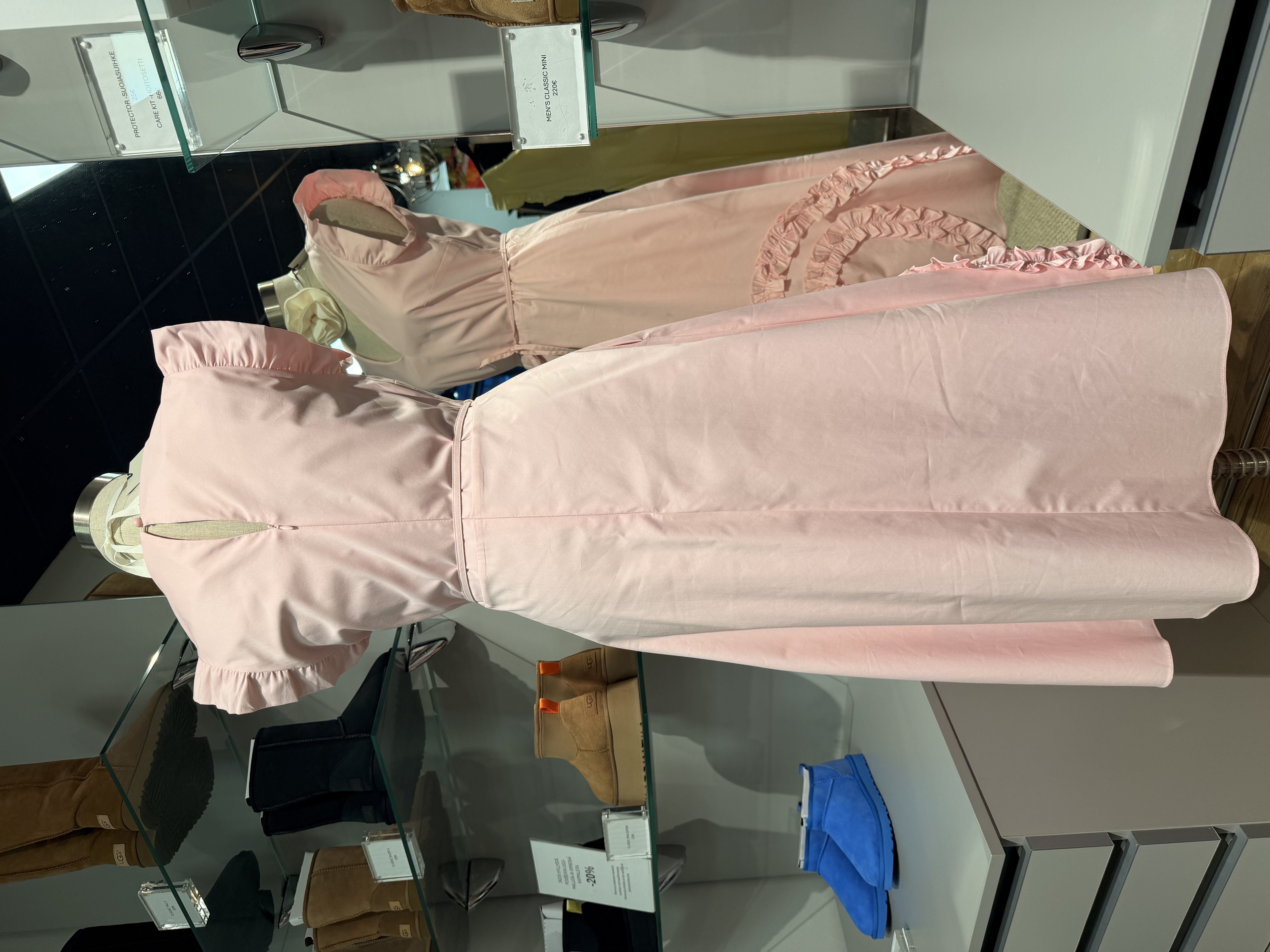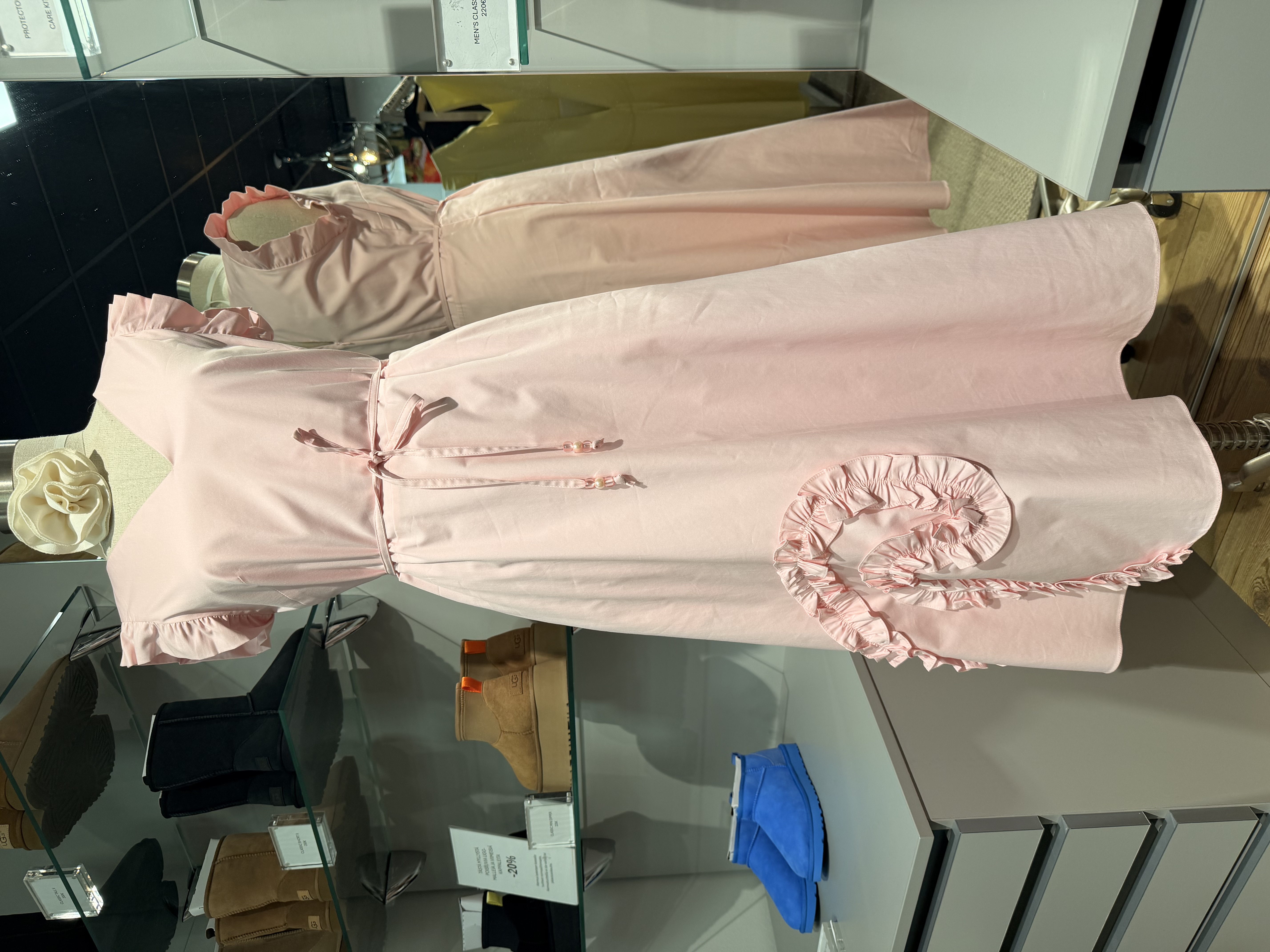 Pitkä puuvillamekko rypytetyillä yksityskohdilla ja lyhyillä hihoillaeleri.