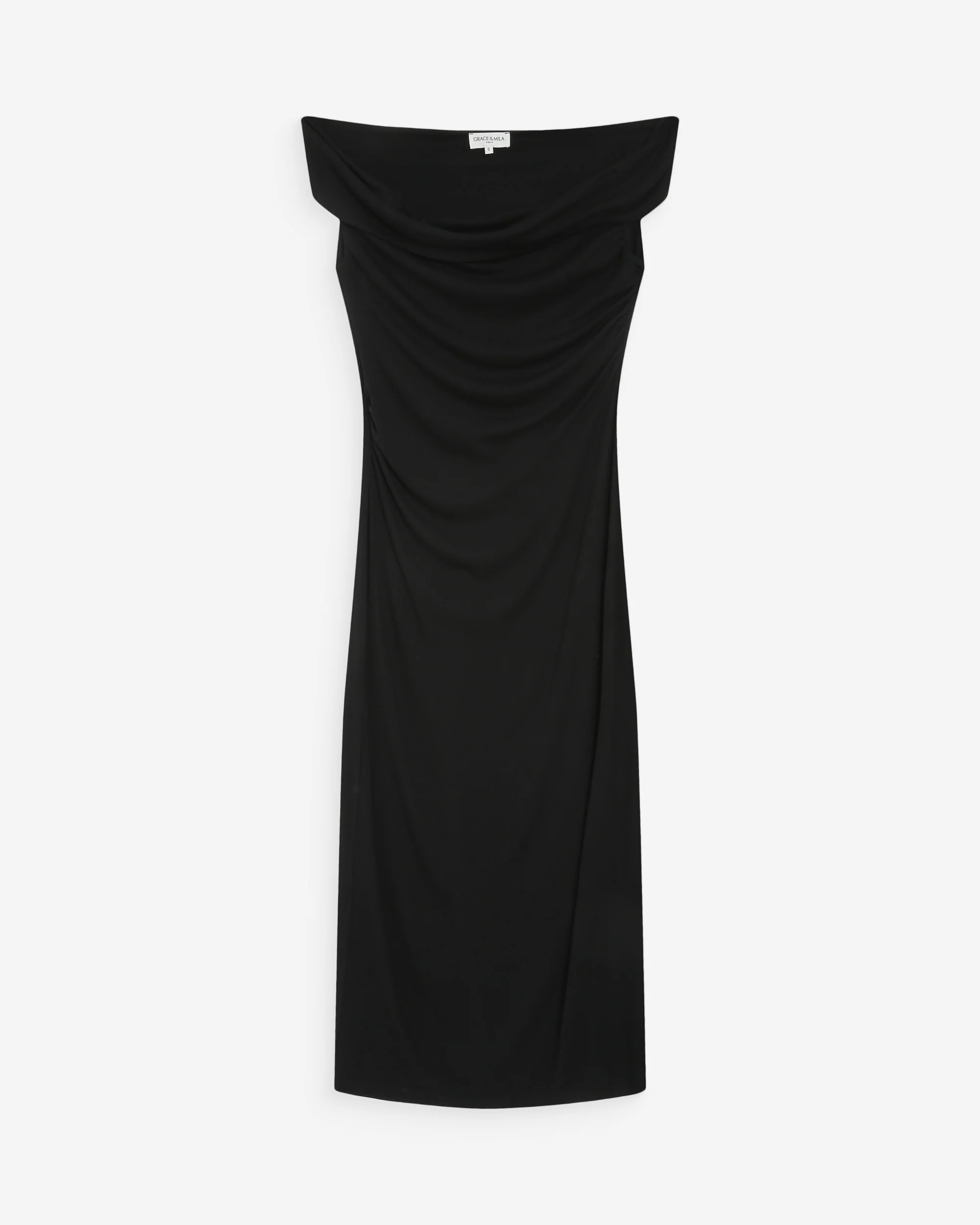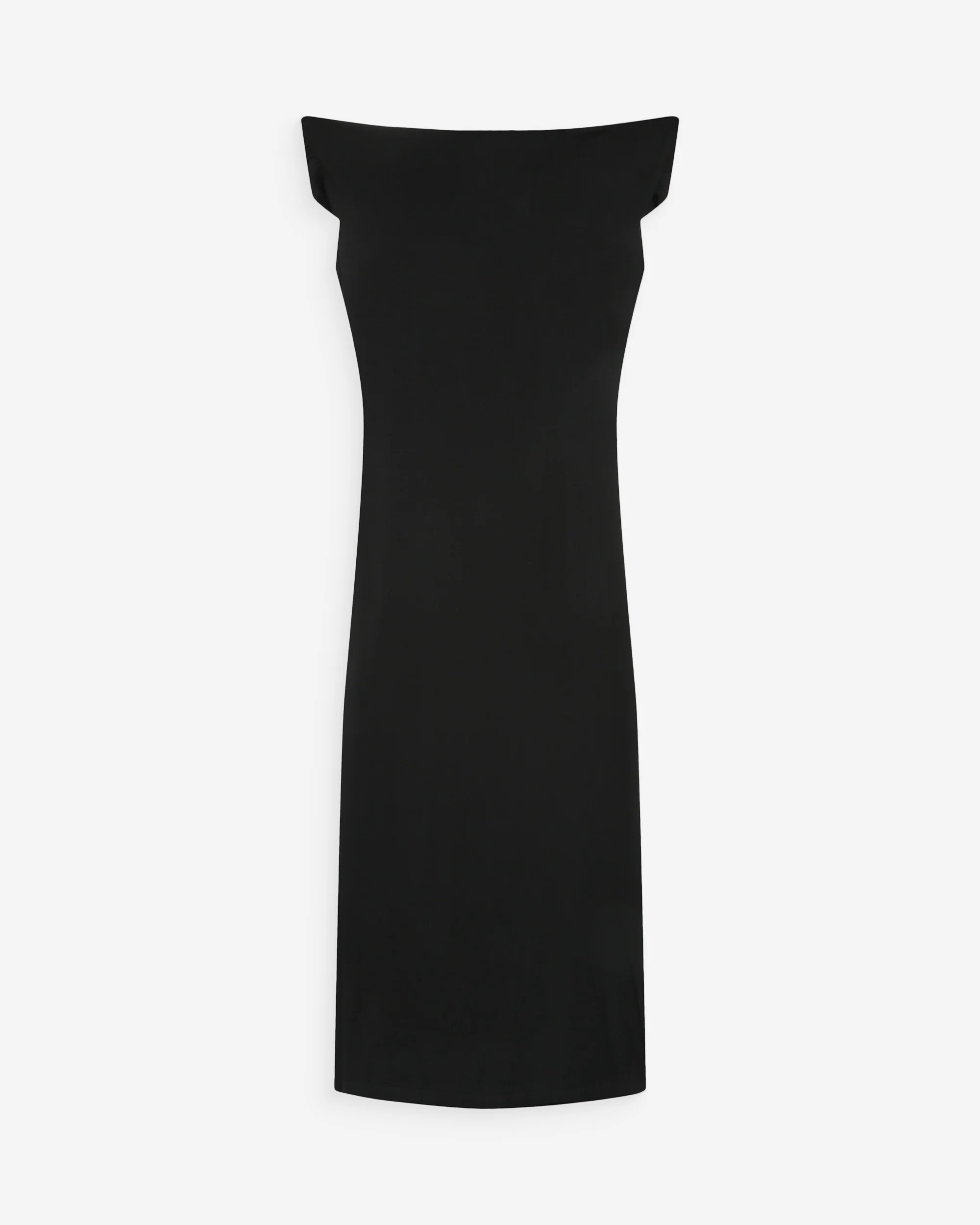 Musta kapeamallinen mekko.