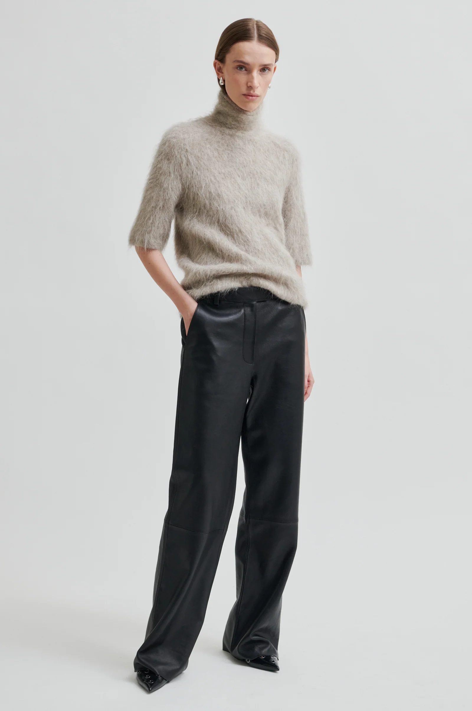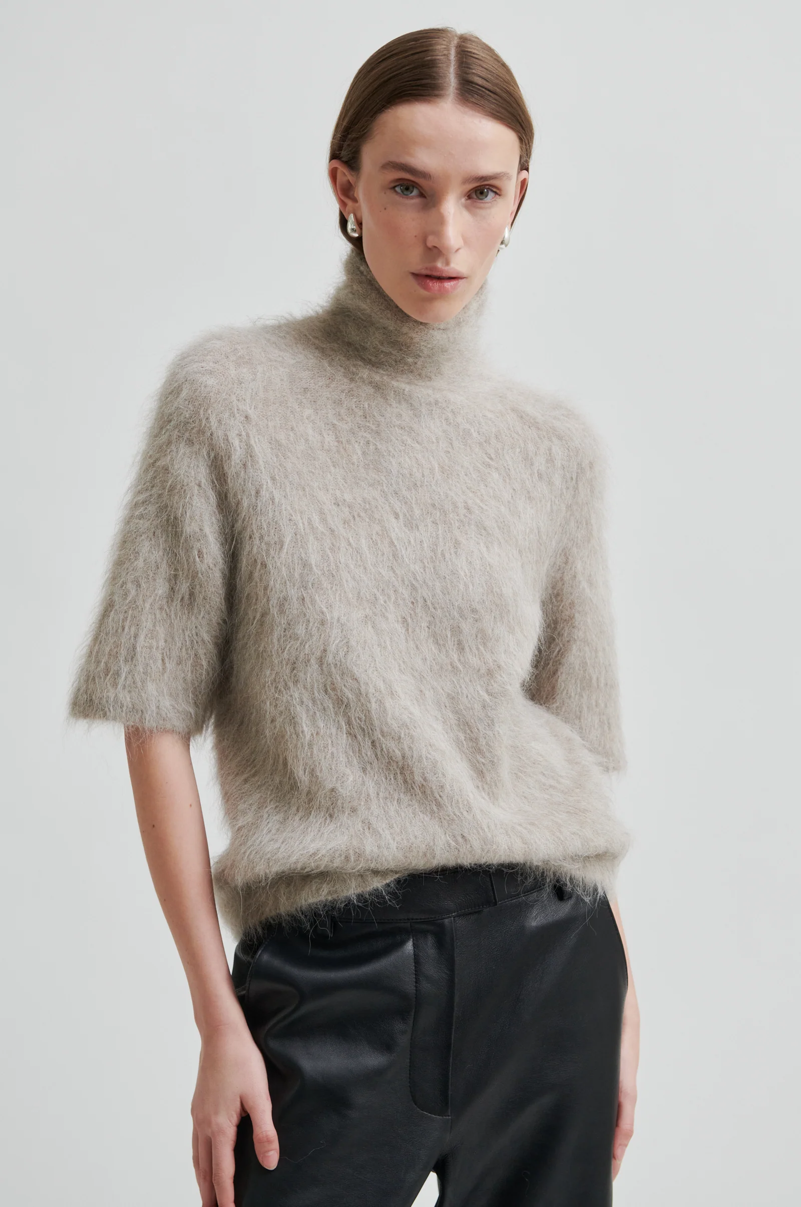 Pörröinen ja lämmin lyhythihainen neule.