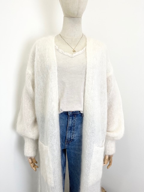 Long mohair cardigan, white