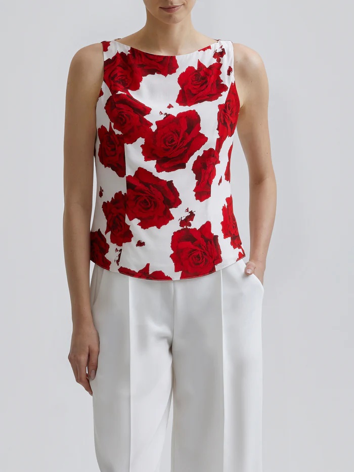 Vartalonmyötäinen hihaton toppi venepääntiellä.