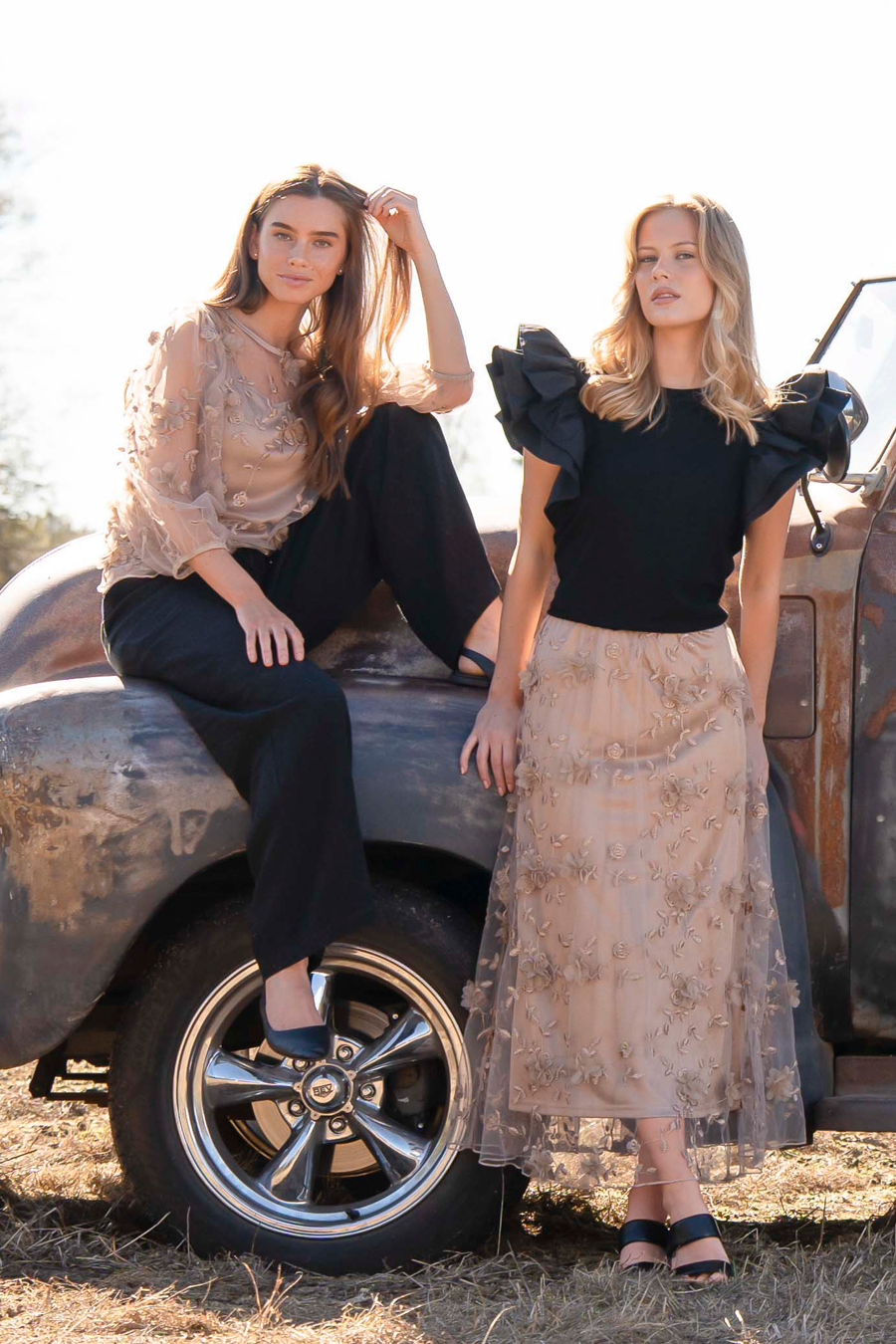 Näyttävä paita kolmiulotteisilla kukilla.