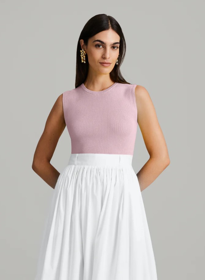 Hihaton ribbitoppi, jossa istuva siluetti ja leveät olat.