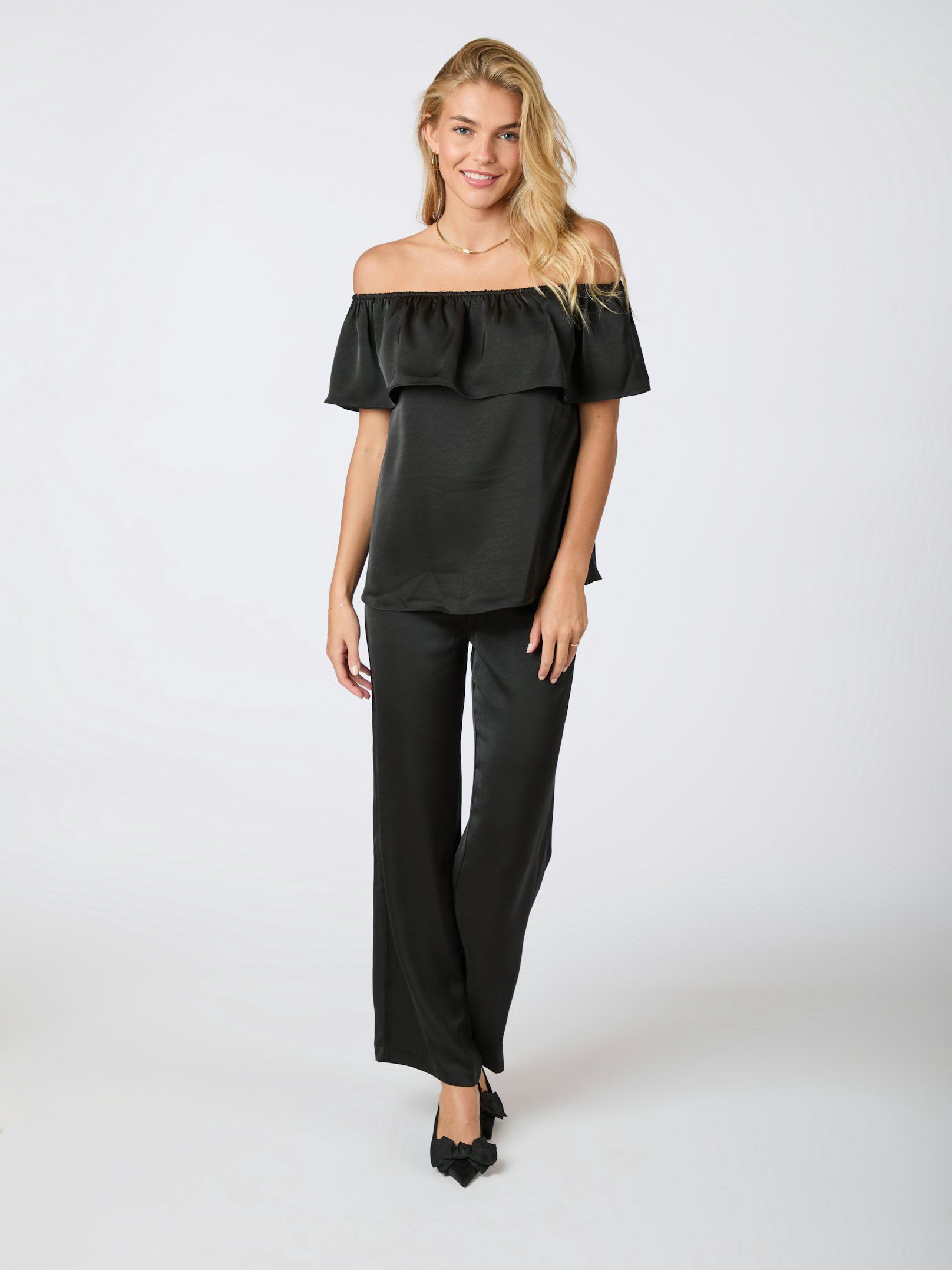 Satiinimainen pinta antaa puserolle myös juhlavan ilmeen.