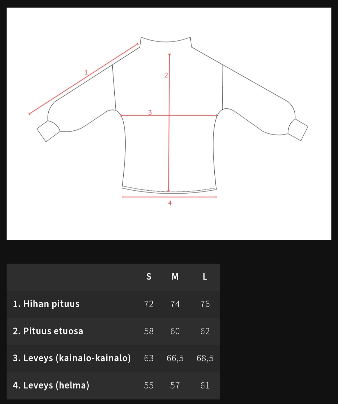 Mitat tuotekuvassa.