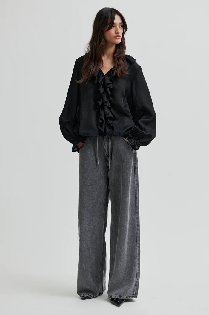 84% lyocell, 16% polyester. Hienopesu 30-asteessa. Voi kutistua jopa 5%.
